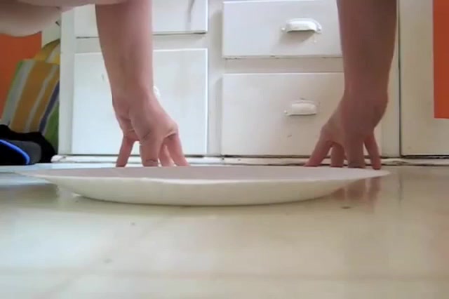 Hot girl decides to poop on a white plate. She dropped a very long turd on that plate…I guess that she's going to smear it later on her body…