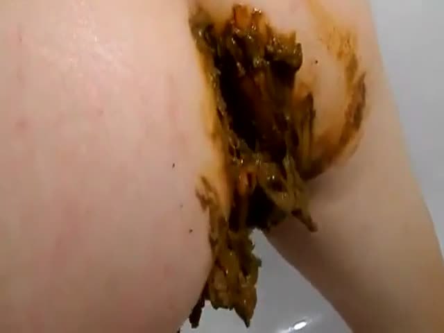 Brunette girl smears brown saved shit on her shaved pussy. She inserts her entire fist deep down into her tight pussy. She reached climax after just two minutes…