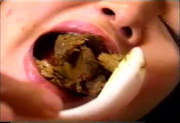 Two sexy Japanese girls pooping on each other in the bedroom. One of them sits on her back on the floor while her friend is pooping in her mouth.