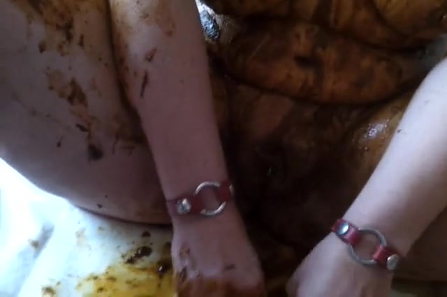 Chubby girl is forced by her mean boyfriend to smear poop on her entire body…she did that to prove that she's into scat.