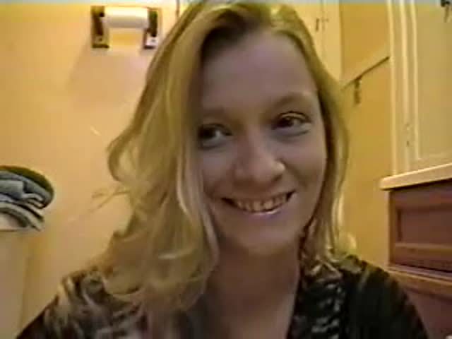 , yellow blonde, who squats in her bathroom to poop for us, on newspapers laid out for the purpose; at first, with much grunting and groaning, she only manages to push out constipated pebbles, but, eventually, she drops a good size turd, and she seems pleased with her efforts, so she sits on the loo to pee.»
