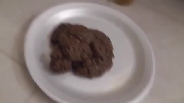Teen girl wants to prove once again that she's into scat…because of that she dropped a big pile of creamy shit on a white plate…nice.