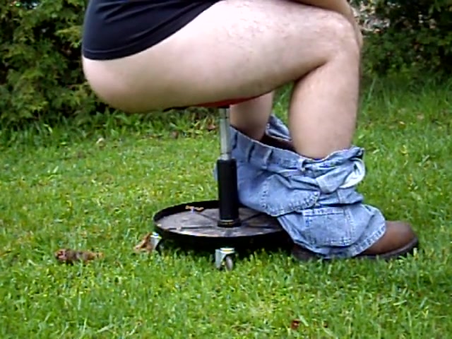 Middle aged gay guy takes a big shit on an outdoor system that pours water on flowers and grass…