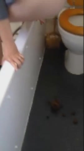 Teen redhead is pooping two or three pieces of shit in the bathtub. It was easier to poop in the toilet…because it was one meter away…
