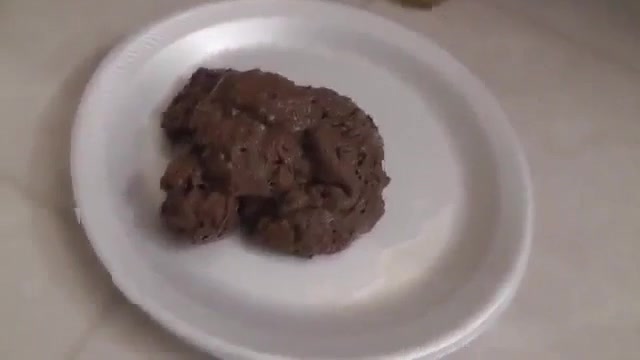 Teen brown haired is pooping a big pile of creamy shit on a white plate. To bad that she didn’t smeared it…right?