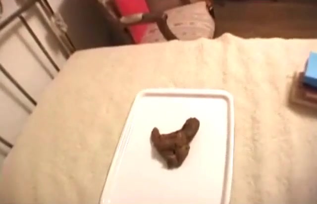 Hot brown haired Japanese girl is pooping on the bed…she was so proud and happy at the end…
