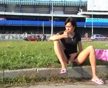 Hot brunette teen girl tried to find a public bathroom but she failed. She shit in her white panties…in public.