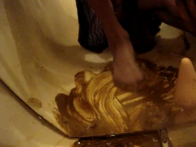 Rubbing the scat all over my bathtub and feet