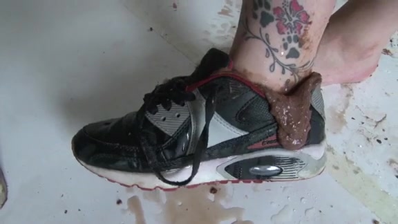 Shit and piss on her sneakers