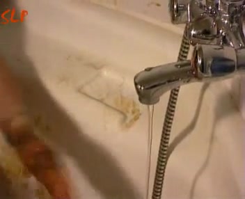 Brunette girl smears poop on a very long dildo…she wants to suck it hard with scat…