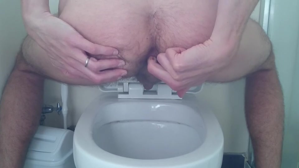 Hairy ass dropping a nice big shit in the bowl. Gaping hole as it drops out and a couple of fingers shoved in to stretch the ass out. Close up of sticky shit afterwards, yum.