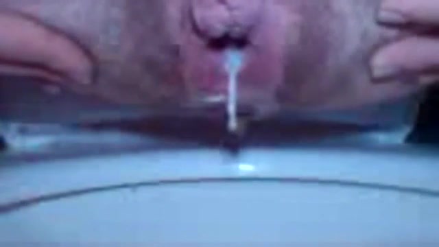taking a shit in the toilet and she has a nice big, smelly poop. The a white liquid leaks from her pussy