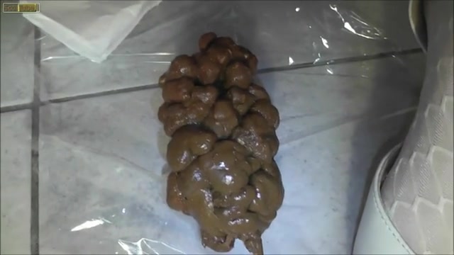 Sexy girl is trying really hard to poop a big turd on the floor but she's very constipated. After two minutes she managed to poop a big one.