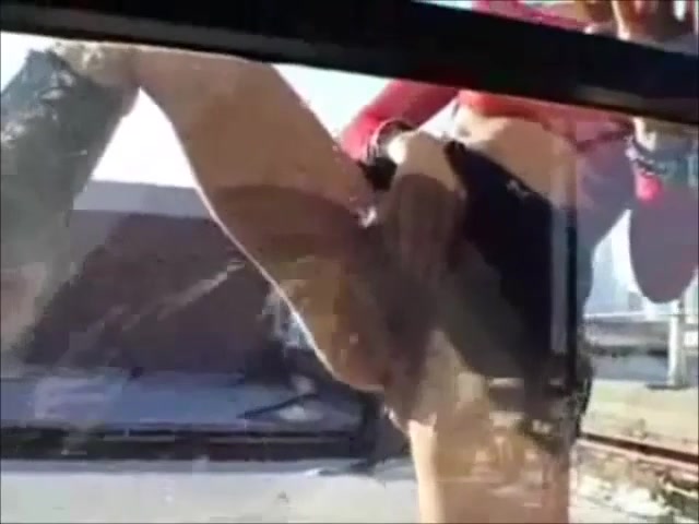 Hot kinky chick doing a bit of watersport and pissing on the window
