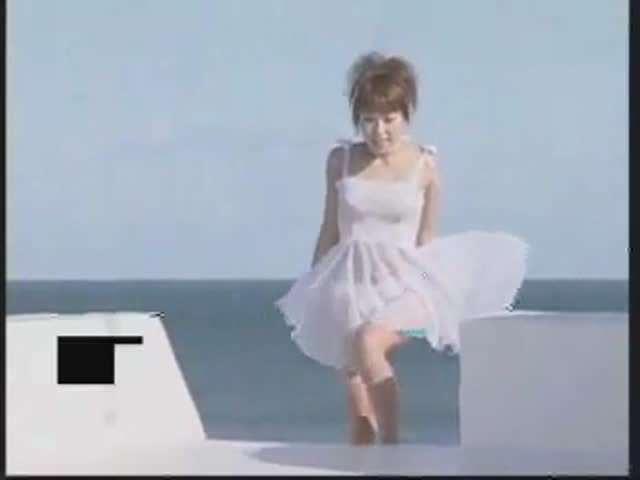 Brown haired Asian is pooping on top of a building. She sits half naked on top of a roof. She was really proud of her fresh shit.