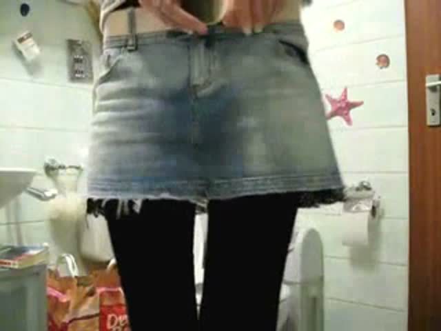 Blonde babe has a really big ass as she's pooping in the toilet. She was smiling all the time.