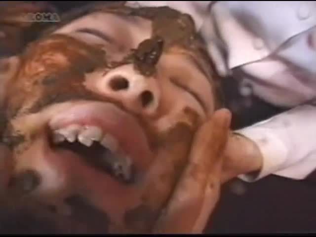 Brunette Japanese girl forced to sit half naked on the floor while a bunch of girls are puking on her entire body.