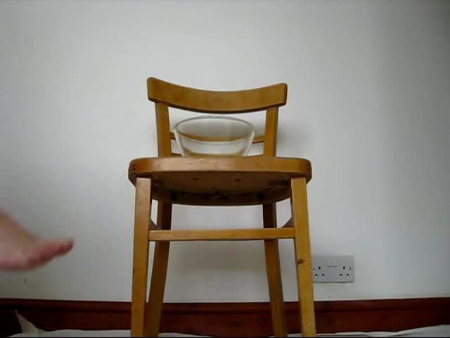 Teen girl sits on a wooden chair while she's pooping a very long brown turd.