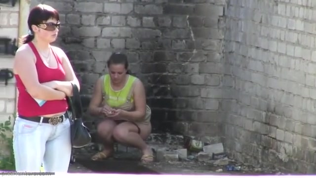 Two sexy girls are peeing in public, on the ground, cause they couldn't find public bathrooms in time.
