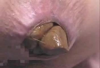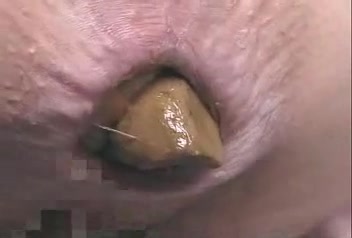Japanese girl records her asshole in close up while she's pooping a very long turd.