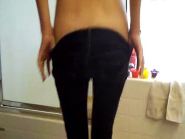Hot teen girl undressed slowly in front of the camera so she can poop in a toilet.