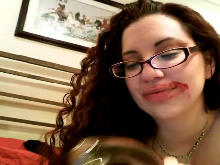 Brunette college girl working on a webcams website. She was paid to insert a dildo intro her bloody pussy even tough she's on her period. As a bonus she sucked that bloody dildo.