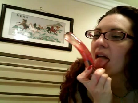 Sucking a bloody dildo