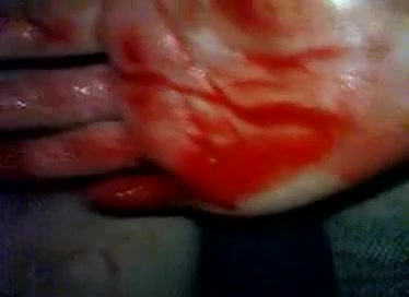 Teen girl is fisted hard by her boyfriend. She's on her period and he pulled out his hand with blood on it.