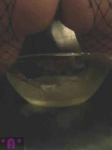 Blonde girl done enema with fresh piss. After that she starts peeing scat in a bowl from her ass.