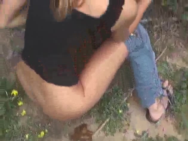 Drunk girl pooping in a forest