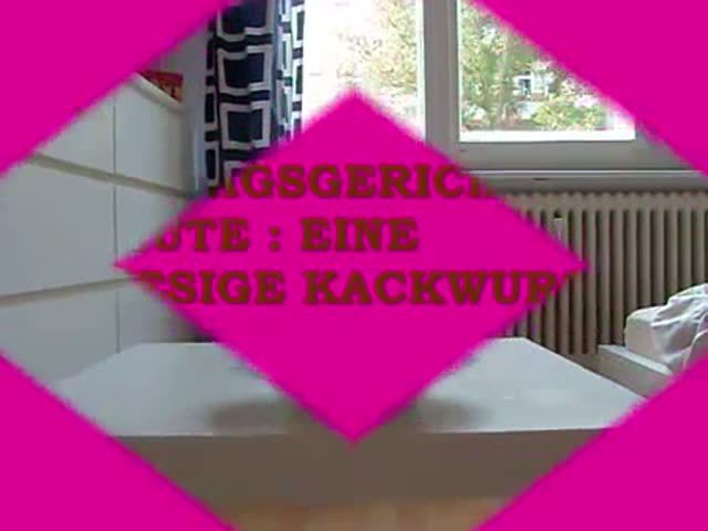 Hot girl shitting a long turd on a white plate. She's really proud of her fresh shit.