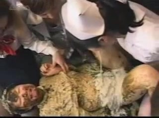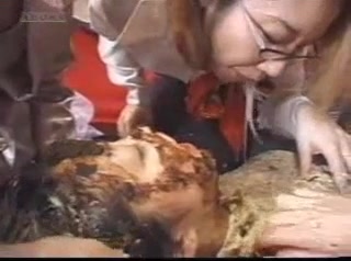 A bunch of girls are puking on a brunette teen. They tortured her with scat and puke.