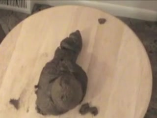 Young girl dropped a huge turd on a wooden table. She left the scene without wiping her asshole.