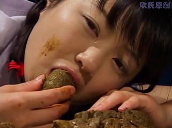 Brunette Asian girl is pooping on the floor. She's eating her own shit until she puked.