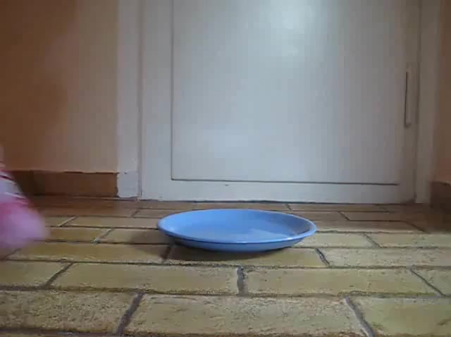 Pierced girl is shitting on a blue plate. She's teasing us with her shaved pussy.