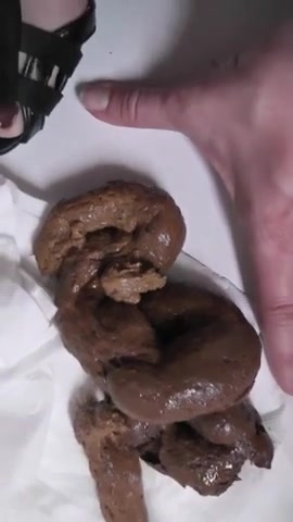 Hot brunette babe wearing black high heels is shitting in the tub. She forgot to wipe her asshole.