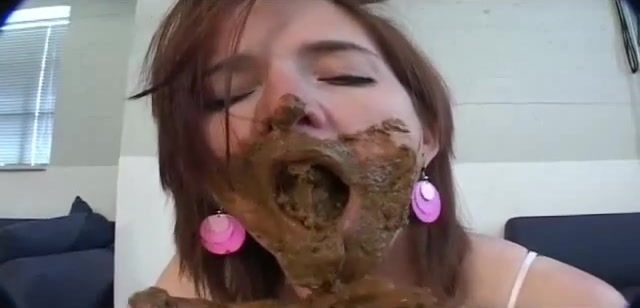 giving a blowjob after she just ate her own poop, sexy girl making a hot mess with her own shit and sucking a shitty dick