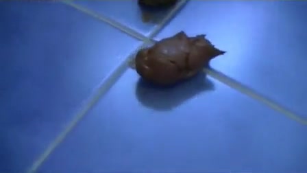 Beautiful girl with a shaved asshole is pooping a mega turd on the floor while she sits half naked in spoon position.