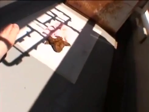 Petite Asian pooping on the balcony floor. She left the scene without wiping her asshole.