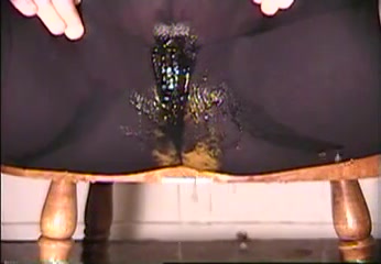 Vintage video of a mature woman that's pooping and peeing in a pair of black pantyhose.