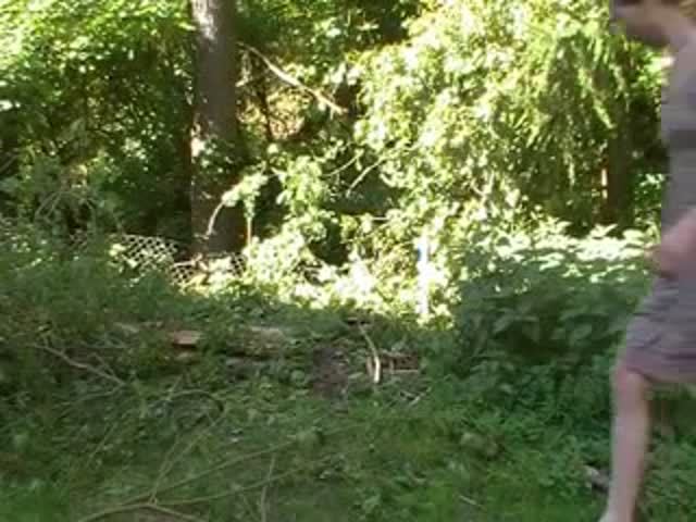 Tattooed blonde pooping in nature