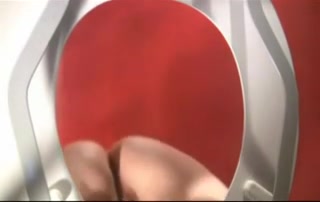 Sweet girl sits naked on a homemade toilet while she's pooping on the bedroom floor.