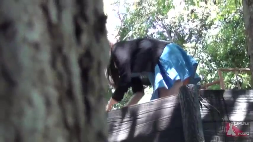 Brunette Japanese girl was caught pooping in public, on the ground. She was very ashamed about it.