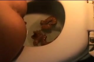 Sexy girl sits naked on the toilet while she's pooping three of four pieces of poop in it.