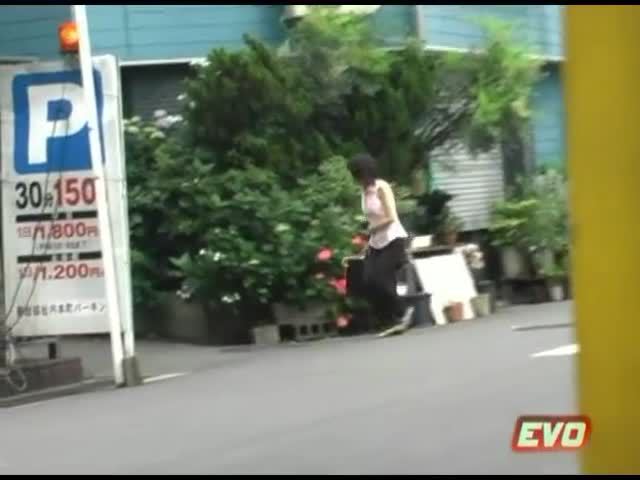 Hot Japanese is pooping behind a building, in public. She was very ashamed about it.