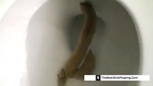 Ebony girl records herself while shitting a long yellow turd over the toilet. Nice.
