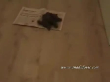 Girl shitting in her house on a newspaper