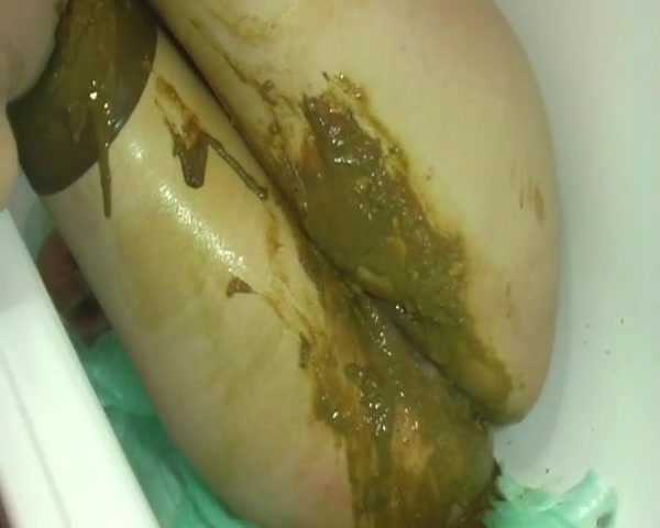 Hot MILF shitting diarheea in brown pantyhose. She's smearing poop on her legs and butt cheeks.