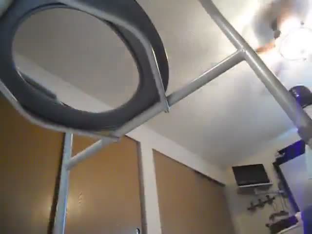 BBW lady sits half naked on a homemade toilet while she's pooping on the bedroom floor.