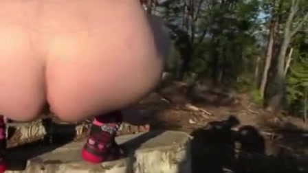Chubby girl pooping outdoor